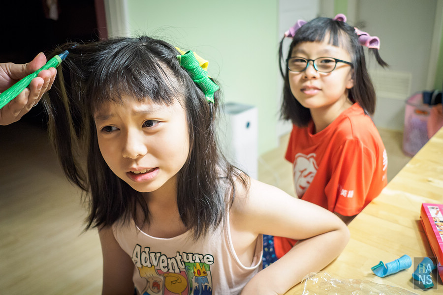 小女生出頭特別多,雙比待在家也閒得慌,比媽網購買回來的髮捲,趁她們剛洗完頭還沒乾時上髮捲,看看乾了之後拆下來會如何囉🤣