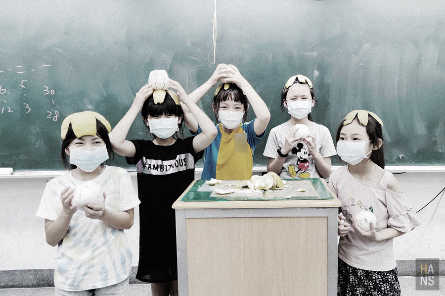 原來,昨天美比她們班上,不只有剝柚子比賽,也有柚子繪畫比賽呢。