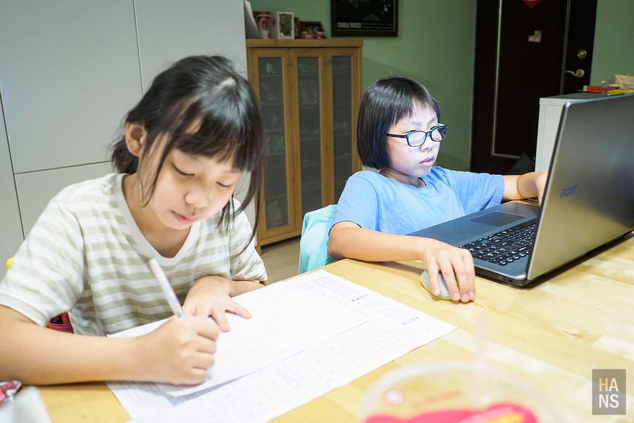 晚上看到雙比在寫作文的作業,一個用打的,一個用寫的。