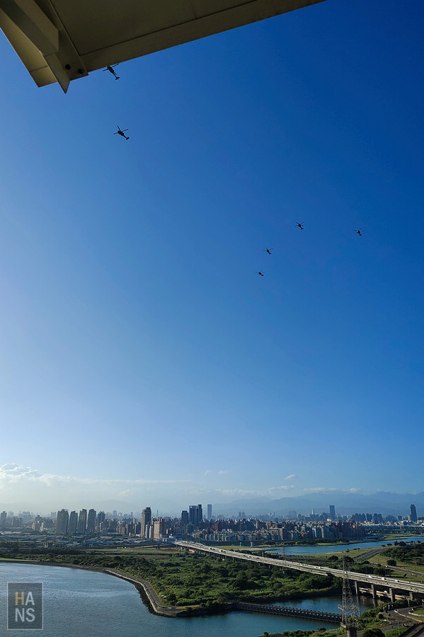 早上聽到直昇機聲音大作,往窗外一看,Wow!原來是為了國慶日慶祝活動的操練預演,真的很壯觀呢!