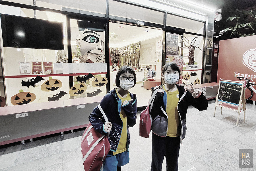 晚上去接雙比英文才藝班下課時,發現她們的英文班的佈置已經添加了萬聖節的元素,小朋友應該很開心吧。