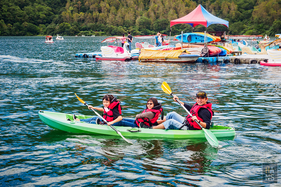 美比先提出想試試看獨木舟,但提出後雙比都有點猶豫與害怕,舉棋不定,後來我提議,那爸爸陪妳們下去好不好,雙比立馬同意,開心的下水去了。