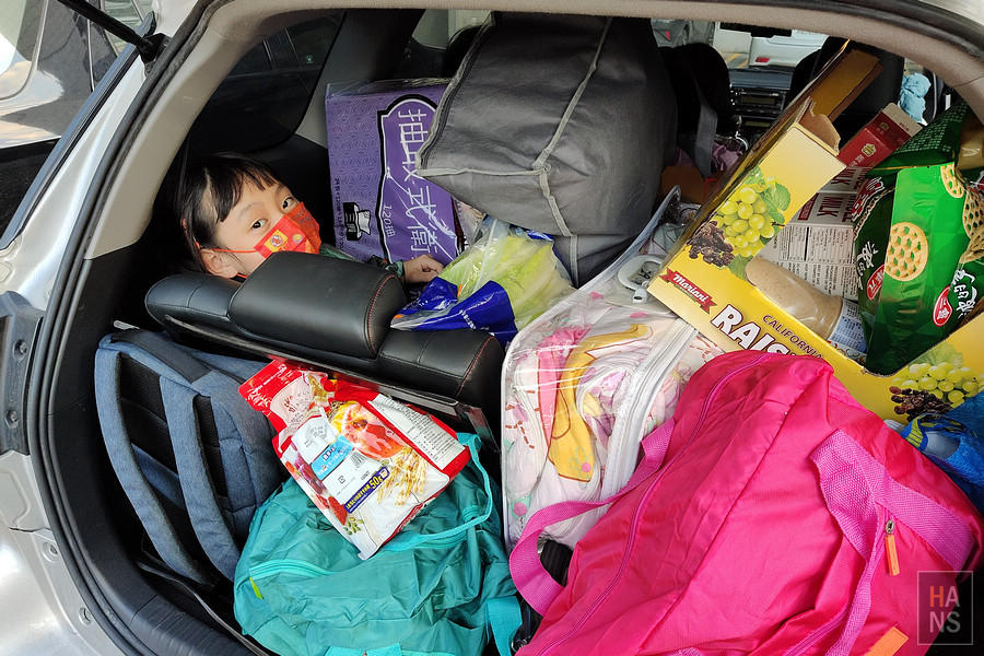 原本,只是要來 Costco 幫老爸買件外套,最後總是加買了一堆東西,再加上昨晚住在老妹家自己帶的行李和睡袋,最後變成照片中這付模樣🤣(有看到美比在哪嗎?)